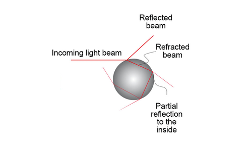 Отражение происходит чаще всего на поверхности частицы – согласно закону: угол падения равен углу отражения.