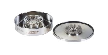 Ударное кольцо FRITSCH в комбинации с кольцевым ситом обеспечивает очень щадящее измельчение пробы. При этом ударное кольцо действует как статор, на котором дополнительно разбивается материал.
