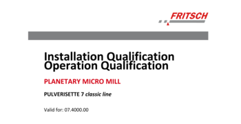 Документация IQ/OQ для самостоятельного выполнения для поддержки квалификации устройства в системе управления качеством для Планетарная микромельница PULVERISETTE 7 classic line.