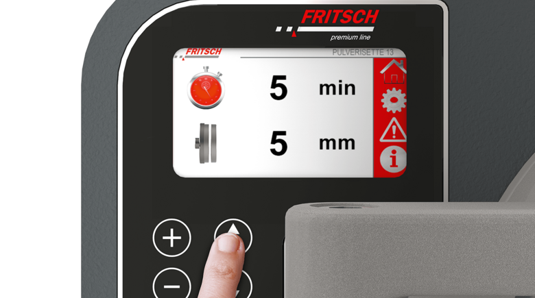 premium-вариант дисковой мельницы FRITSCH для эффективного тонкого измельчения от твердо-хрупких до среднетвердых сухих веществ: еще безопасней благодаря автоматическому запиранию емкости для измельчаемых проб и измельчительной камеры, еще проще в эксплуатации благодаря электромеханической настройке зазора с цифровой индикацией величины зазора, а также индикация всех параметров на легко читаемом дисплее.