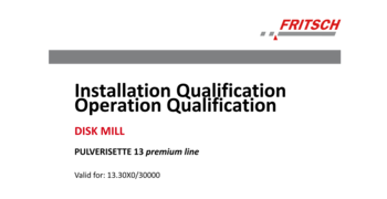 Документация IQ/OQ для самостоятельного выполнения для поддержки квалификации устройства в системе управления качеством для Дисковая мельница PULVERISETTE 13 premium line.