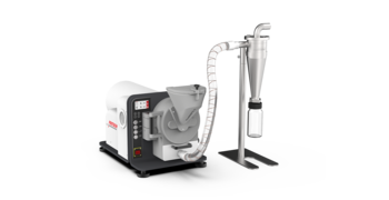 Сочетание дисковой мельницы PULVERISETTE 13 premium line с высокопроизводительным циклоном позволяет упростить очистку и заполнение, использовать более тонкие кассеты сит для более высокой конечной тонкости, ускорить пропускную способность и сохранить низкую тепловую нагрузку на образцы - даже при работе с материалами, которые иначе трудно подвергнуть тонкому измельчению.