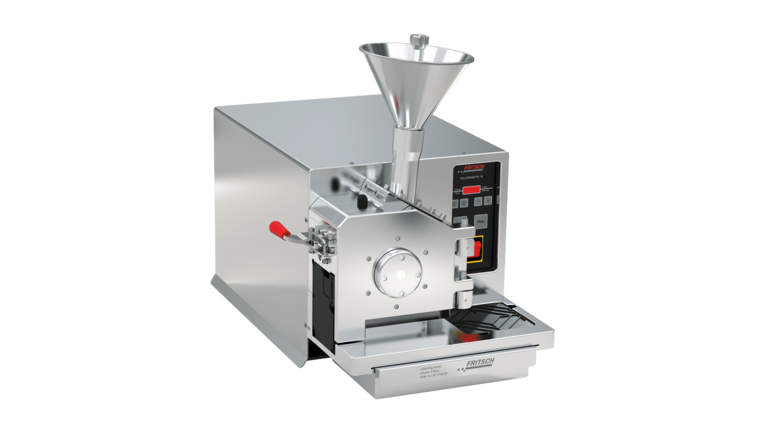 The Universal Cutting Mill PULVERISETTE 19 with variable rotational speed 500-700 rpm is ideal for the powerful comminution of hard, tough-elastic and temperature-sensitive materials with a maximum feed size of 70 x 80 mm and a throughput of 60 l/h.