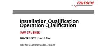 IQ/OQ documentation (questionnaire format - implementation by customer) for the independent utilization for the support of instrument qualification in the quality management system for the Jaw Crushers PULVERISETTE 1 classic line, model I and II.