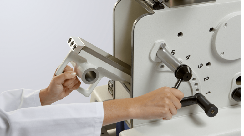Кинематика - т. е. движение между подвижной и неподвижной дробящими плитами - щековой дробилки FRITSCH PULVERISETTE 1 classic line очень просто регулируется в соответствии с характеристиками дробления соответствующей пробы: выберите движение вниз и вверх подвижной дробящей плиты относительно неподвижной, так вы получите пробу в узком диапазоне крупности частиц. Для максимально быстрого измельчения выберите практически круговое движение.