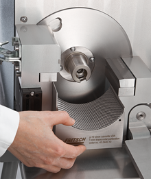 Extremely decisive though for the production of bio ethanol is the achievable final fineness. Here due to the utilized patented FRITSCH sample exhaustion, it is possible to produce sufficiently large amounts of bio mass with a particle size distribution from up to smaller than 250 µm, which then can be transferred to the fermentation plants without any problems. The attainment of the required final finenesses depends mainly on the type of commodities, as well as the regulating factors of the machines (sieve inserts / comminution principle). So inevitably the available sieve passage surface with the used 100 µm sieves are multiply reduced in comparison with the standard sieves, resulting in a high degree of physical strain on the sample material. This physical strain usually becomes noticeable through the generation of heat in the instrument, as well as a reduced throughput.