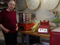 The essence of pigment processing with the FRITSCH Planetary Ball Mill is that the particles obtain a softer almost round shape through the circulation inside the grinding bowl and the mechanical strain of the round grinding bodies. Of course it would be ideal if the desired grain size distribution of the particles could be very closely together. Very often the production of pigments of a certain fractions is requested. For this reason the grinding parameters at Kremer's were optimized in order to avoid the production of too many large or fine shares and producing as much as possible of the desired fraction.